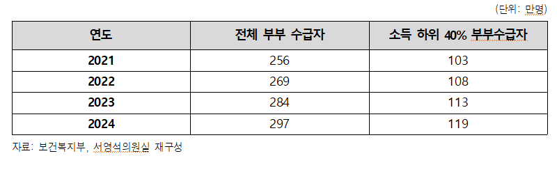 ▲‘21~’24 전체 부부 수급자 및 소득 하위 40% 부부 수급자 현황