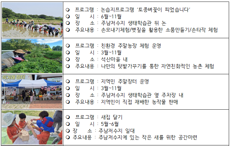 철새들의 비행이 아름다운 주남저수지의 생태관광 정보와 여행 정보는 기후에너지환경부 ‘우리나라 생태관광이야기’ 누리집과 창원주남생태관광협회 누리집에서 확인할 수 있다.