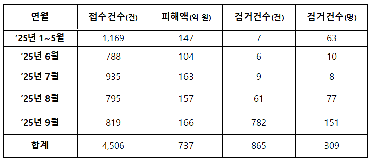 허 의원이 경찰청으로부터 받은 2025년 1월부터 9월까지 노쇼(no-show)사기 현황 자료에 따르면 접수 건수는 4,506건, 피해액은 737억 원에 달했다. 검거 건수는 865건에 309명이 검거되었다.
