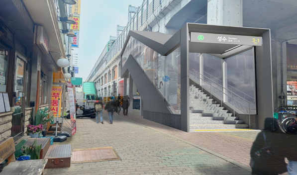 성수역 출입구 계단 추가 신설은 이용률이 높은 기존 3번 출입구 전면에 3-1번 계단을 추가로 조성하는 방식으로 추진한다.
