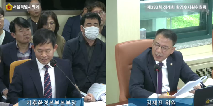 서울시의회 환경수자원위원회 김재진 의원(국민의힘, 영등포1)은 제333회 정례회의 2025년 기후환경본부 행정사무감사에서 자치구가 직고용한 환경공무관들의 통상임금 소송 관련 임금 지급 문제에 대해 집중 질의하며, 25개 자치구가 떠안은 약 3,780억 원 규모의 재정 부담에 대해 서울시의 지원 방안을 마련해야 한다고 촉구하였다.