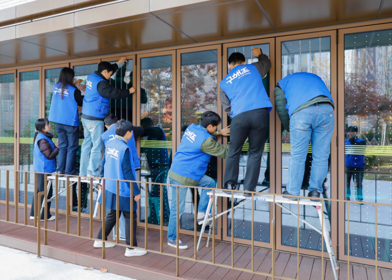 이날 활동에는 KCC글라스 임직원과 국립생태원 관계자를 비롯해 유튜버 ‘새덕후’와 구독자 등 30여명이 참여했다. 참가자들은 강동숲속도서관 유리에 조류충돌방지스티커를 부착하고 인증 현판을 설치했으며 야생조류 보호의 중요성을 알리는 토크 콘서트도 함께 진행했다.
