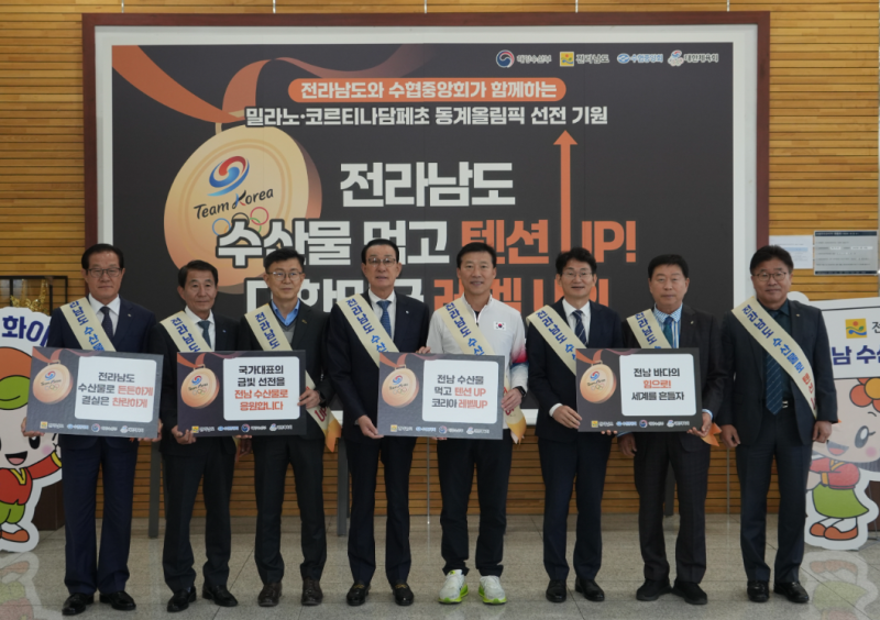 수협중앙회(회장 노동진)는 12일 해양수산부, 전라남도, 대한체육회와 함께 충북 진천 선수촌에서 수산물 후원 행사를 개최했다.