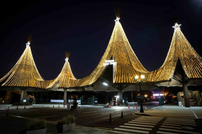 내년 2월까지 운영되는 야간 조형물은 정문 LED 조형물, 대형 크리스마스 트리, 황금 나무 등으로 구성됐으며, 가족과 연인 단위 방문객들이 즐길 수 있는 SNS 인증 명소로 자리매김할 전망이다.