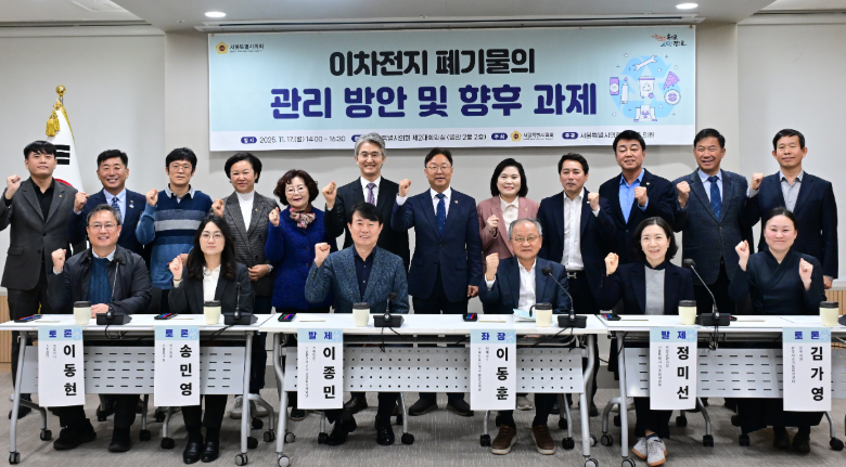 이용균 의원은 “오늘 논의된 의견을 기반으로 서울시가 재사용·재활용·안전관리를 아우르는 선도적 이차전지 자원순환 모델을 구축할 수 있도록 의회가 적극 협력하겠다”며 “위험을 줄이고 자원 가치를 높이는 길은 결국 행정·산업·시민이 함께 만들어가야 한다”고 밝혔다.
