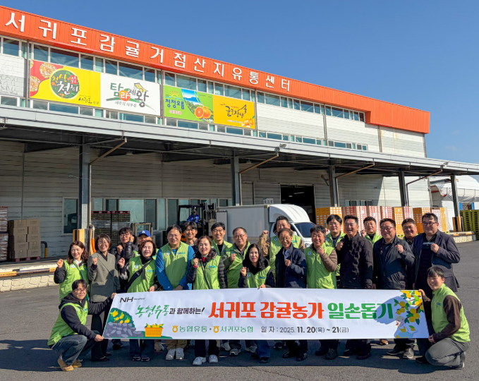 감귤 최대 주산지 제주 서귀포에는 제철을 맞은 노지 감귤 수확이 한창이다. 농협유통 임직원들은 일손을 많이 필요로 하는 수확 철을 맞아 이틀간 제주에 머물며 감귤 수확과 상품화 작업을 돕는다.
