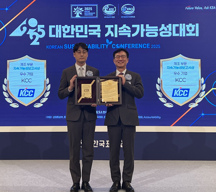 한편, KCC 지속가능성보고서는 지난해 대한민국 지속가능성대회 3관왕(KRCA, KSI, CEO상)을 수상한 바 있으며, 미국 커뮤니케이션 연맹(LACP)이 주관하는 비전 어워드 와 스포트라이트 어워드 에서 연차보고서 부문 금상, 머콤주관 ARC Awards에서 동상을 수상하며 보고서의 디자인과 메시지 전달력을 인정받았다.