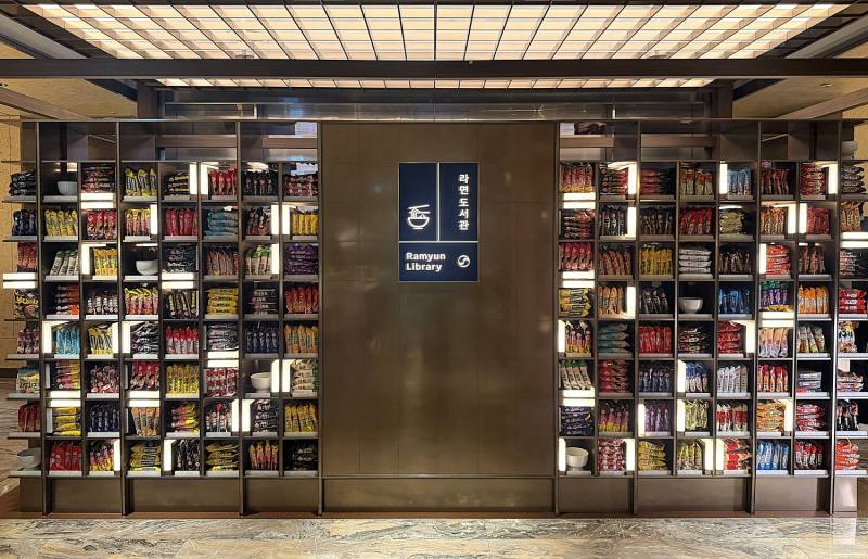 ‘라면 라이브러리’는 인천공항 제2여객터미널 253번 탑승구 맞은편 4층에 위치한 대한항공 프레스티지 동편 좌측 라운지 내에 조성됐다.