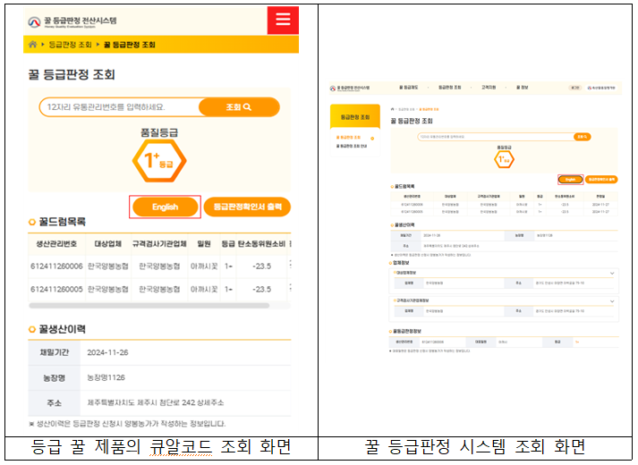 또한, 해외 바이어의 등급 꿀 유통·판매를 지원하고 수출국의 소비자가 해당 제품의 정보를 직관적으로 확인할 수 있도록 영문 번역 기능을 추가했다.
