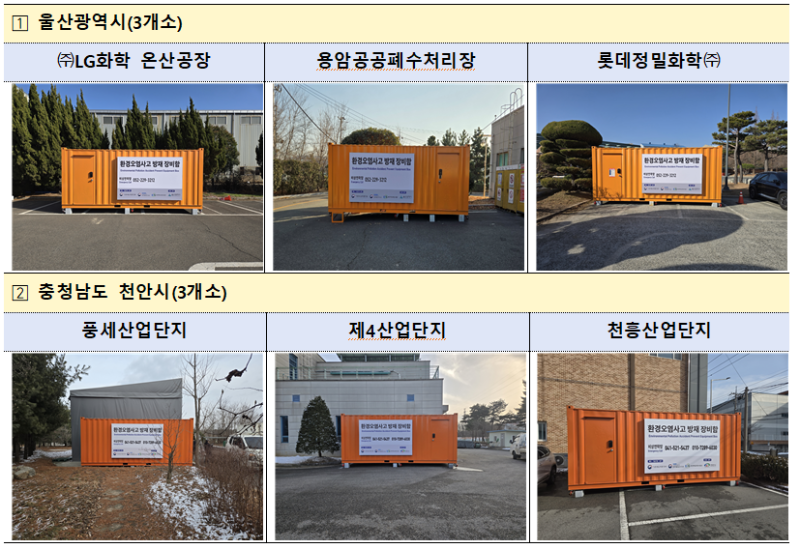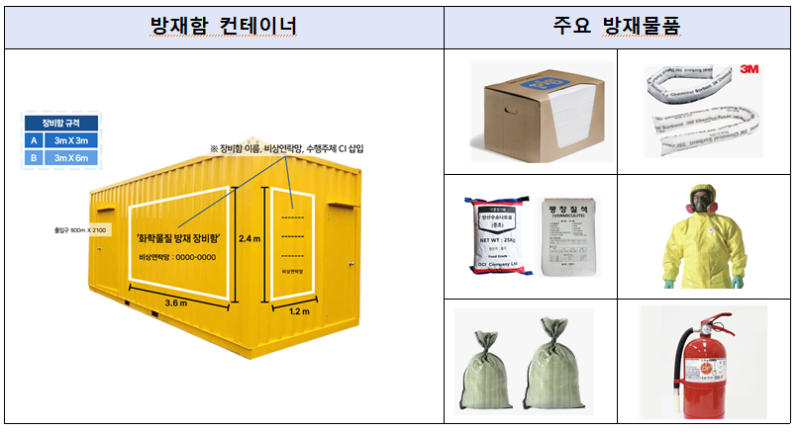 각 방재장비함에는 화학물질 및 유류 유출사고 발생 시 즉시 활용할 수 있도록 흡착제, 중화제, 방재 도구 등 환경오염 저감 장비( 흡착포, 중화제, 보호장구 등 방재장비함 당 총 18종 145점 방재물품 구비(11개소, 총 18종 1,595점) )가 비치되었다. 이들 장비는 사고 초기 단계에서 대응 지연을 최소화하고 환경 피해 확산을 예방하는데 효과가 있다.