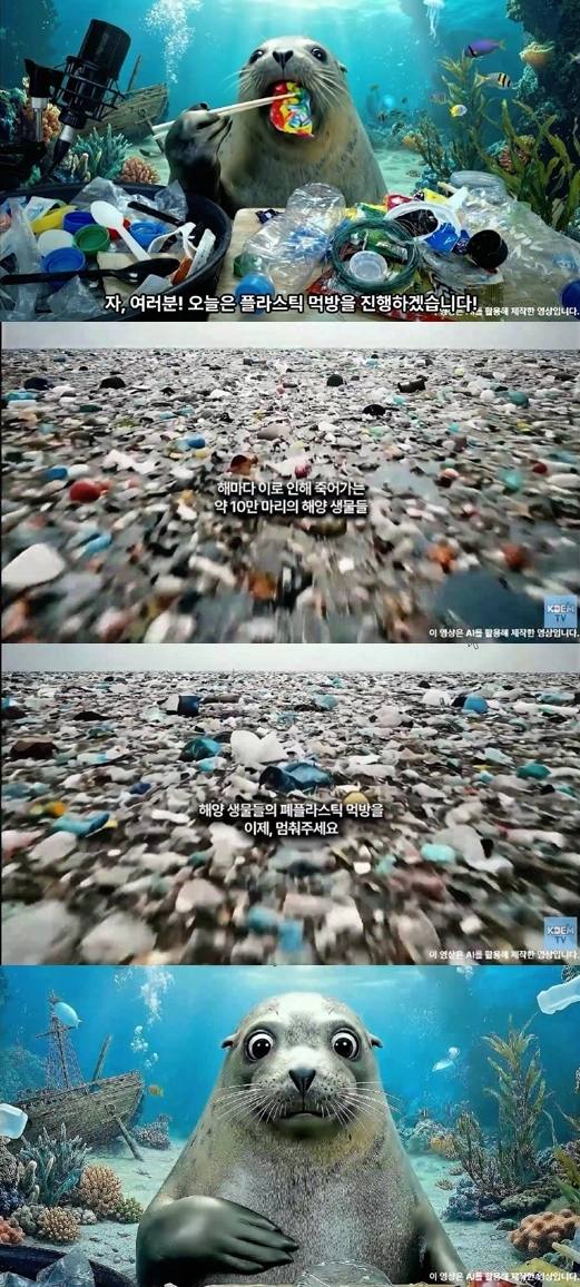 영상을 접한 누리꾼들은 “충격적이다”, “AI 영상이지만 실제로 일어나고 있는 일일 것”, “해양 환경 보호가 시급하다”, “플라스틱 문제는 언제 해결되나”, “플라스틱을 먹고 죽는 해양 생물도 많을 것” 등 다양한 반응을 보였다.