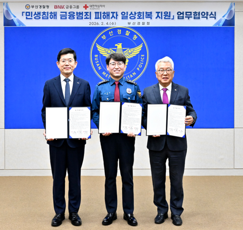 이번 협약식에는 BNK금융그룹과 부산경찰청, 대한적십자사 부산지사가 참여했으며, 보이스피싱·로맨스스캠·투자사기 등 서민의 일상과 생계를 위협하는 민생침해금융범죄를 예방하고, 범죄 피해 발생 시 신속하고 실질적인 지원이 이뤄질 수 있도록 협력체계를 구축하기 위해 마련됐다.