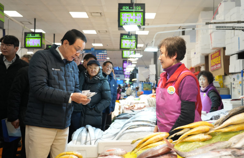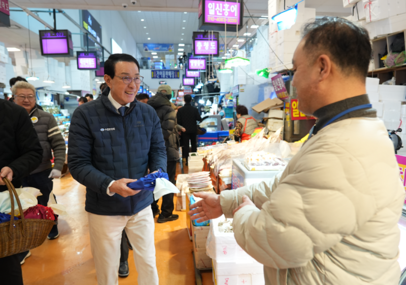 수협중앙회는 고등어, 조기 등 정부 비축수산물을 작년 설보다 2천 t 늘린 1만 3천여 t을 시중가 대비 최대 50% 할인한 가격으로 전통시장, 마트, 도매시장 등에 오는 15일까지 공급할 계획이다. 노 회장은 이날 정부 비축 및 제수용 수산물을 직접 구입하며, 현장 가격 동향을 살폈다.