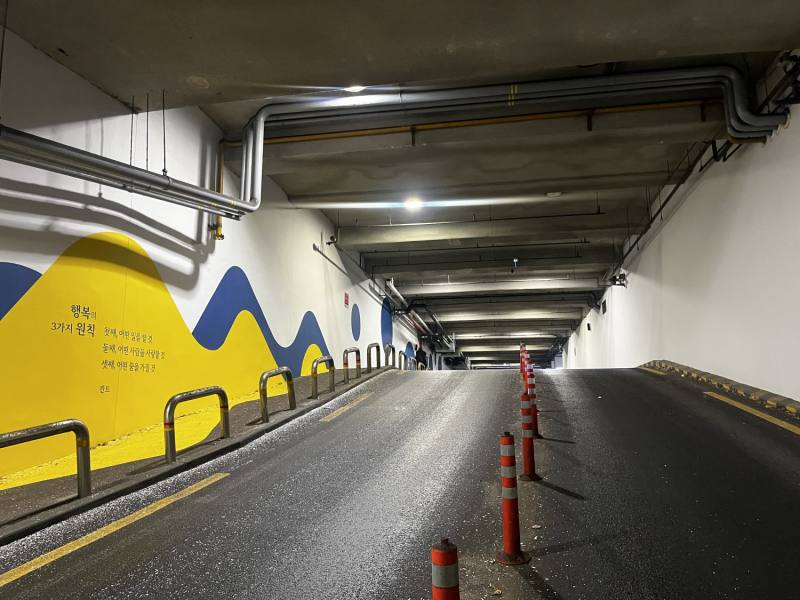 색채 대비를 통해 보행자의 시선을 자연스럽게 유도하고, 지하차도 특유의 심리적 불안을 완화하는 데 중점을 뒀다.