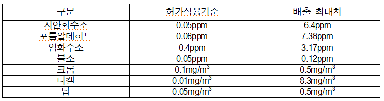 이 과정에서 ‘대기환경보전법’ 상의 특정대기유해물질인 염화수소 등이 배출*됐다. 이 무허가 배출시설은 2020년 11월부터 2022년 10월까지 운영되었다. 또한, 아산공장에서는 소각로를 가동하면서 대기오염방지시설의 일부인 반건식반응탑을 2013년 11월부터 2022년 4월까지 가동하지 않아, 염화수소가 배출허용기준(12ppm)을 초과하여 최대 31.3ppm까지 배출됐다.