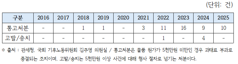 이에 국정감사 이후 기후에너지환경부는 국립생태원을 통해 온라인 플랫폼 내 국제적 멸종위기종 불법 거래 실태를 점검하고, 불법 가공품 신고시스템과 온라인 감시단 매뉴얼 마련을 추진하고 있다. 그러나 최근 10년간 온라인 중고 플랫폼을 통한 국제적 멸종위기종 불법 거래에 대한 단속 실적은 0건으로 확인돼, 관련 조치가 아직 실질적인 단속과 관리로 이어지지 못한 상황임을 확인할 수 있다.
