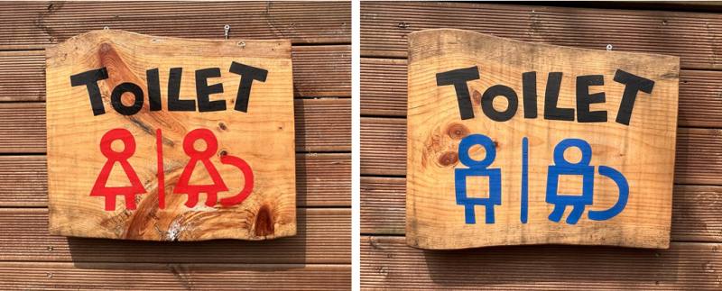 남이섬 화장실 표지판을 보면 영어 표기 없이 그림만으로 남녀를 구분하고 있다. 문제는 이 그림이 국제적으로 통용되는 방식과 다르다는 데 있다.