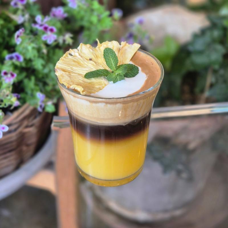 열대과일인 오렌지와 파인애플을 커피와 조합해 만든 크림 라떼